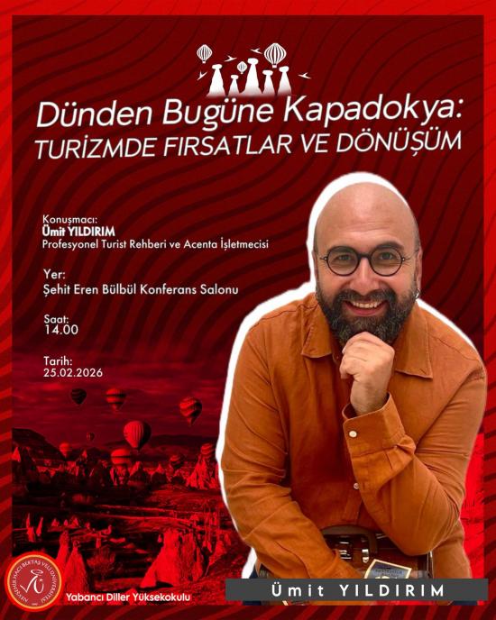 Yabancı Diller Yüksekokulu İsteğe Bağlı Hazırlık Sınıflarında eğitim almakta olan Turizm&Seyahat Kulübü ve Fotoğrafçılık&Hikaye Anlatma Kulübü öğrencilerimizin seçmeli kulüp dersleri kapsamında hazırladığı söyleşiye tüm öğrencilerimiz davetlidir.